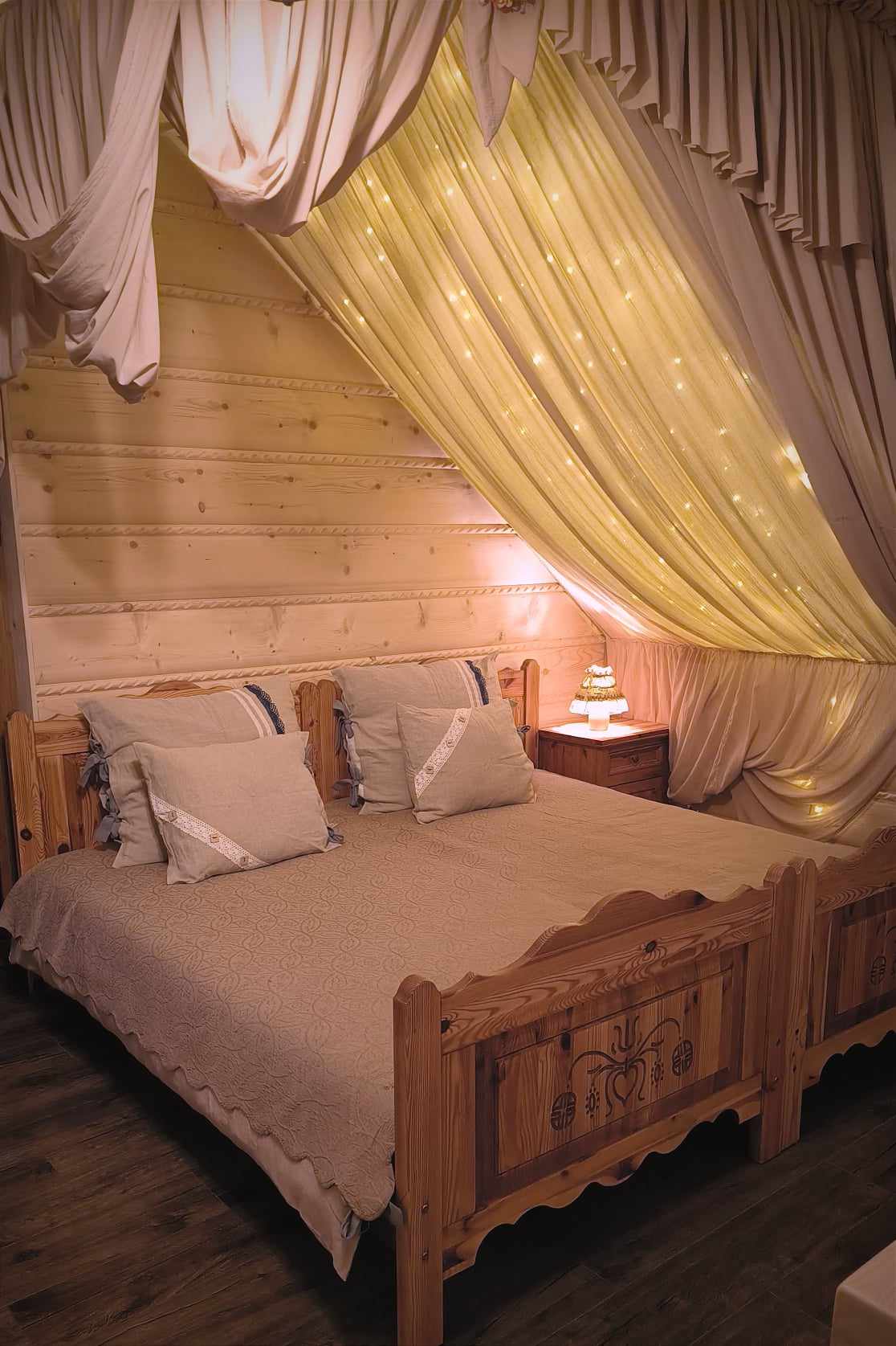 Bycie eko to nie tylko moda ale wręcz obowiązek. Wszystkie urządzenia w naszym domu są zasilane za pomocą energii odnawialnej. Meble z prawdziwego drewna, kamienne podłogi, naturalne dodatki. Zdrowy i przyjemny sen zapewni Państwu lniana pościel szyta ręcznie z certyfikowanego, polskiego