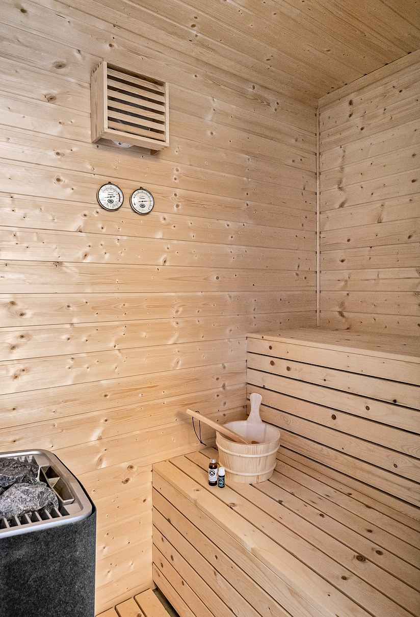 Do dyspozycji gości jest sauna sucha typu fińskiego. Jednorazowo może pomieścić max 6 osób. Sauna jest odpłatna,1 godzina na wyłączność to koszt 80 zł, godziny rezerwacji proszę uzgadniać na miejscu osobiście lub SMS-owo pod numerem tel. 799 060 450